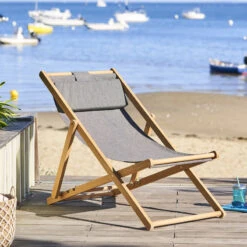 Profitez du soleil avec la chilienne en bois d’eucalyptus Mahini coloris carbone de la marque Hespéride.